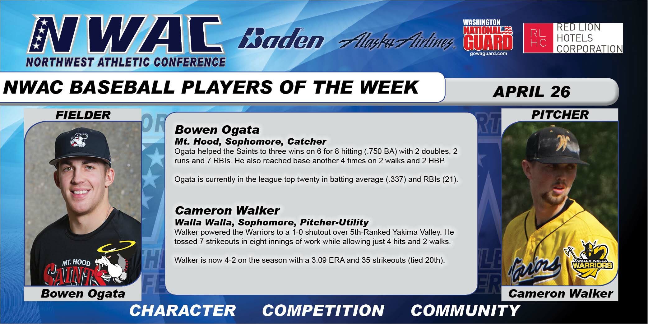 Under Armour Baseball Player of the Week & NWAC Players of the Week