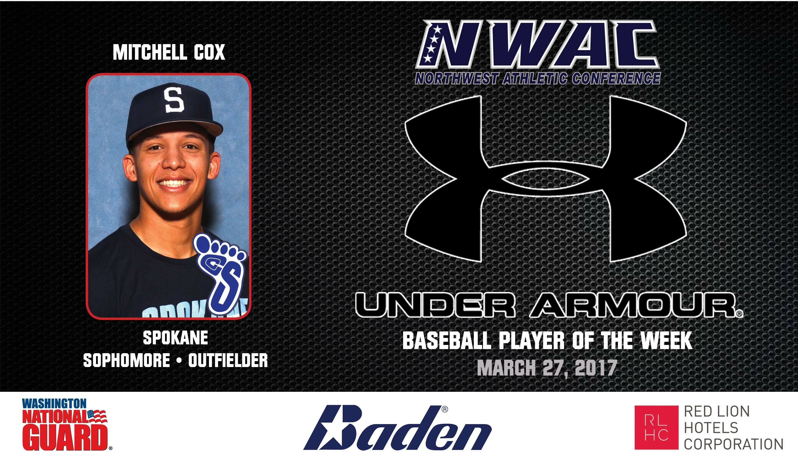 Mitchell Cox, Shadle Park HS / Spokane, WA, batted .563 in 4 wins over Skagit Valley last week. Cox 9 hits with 2 base on balls, 4 runs, 2 home runs and 6 RBIs.